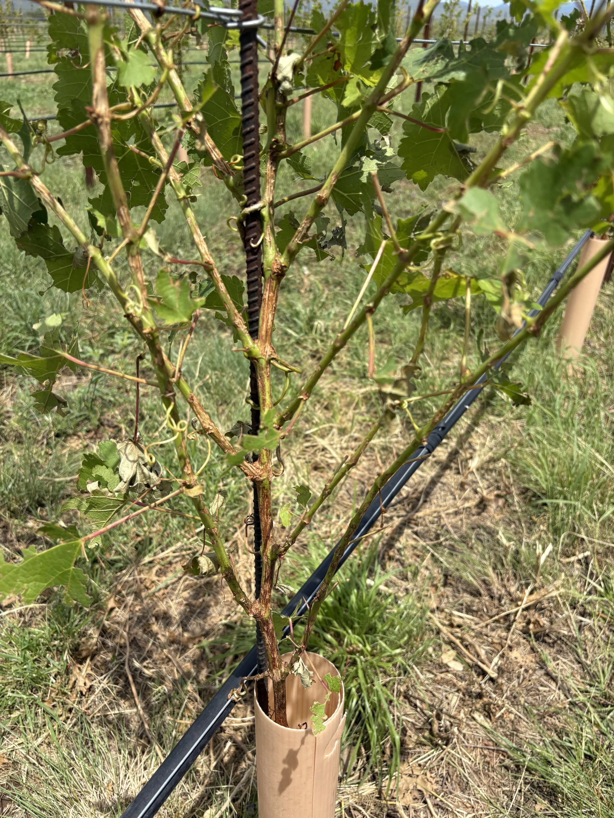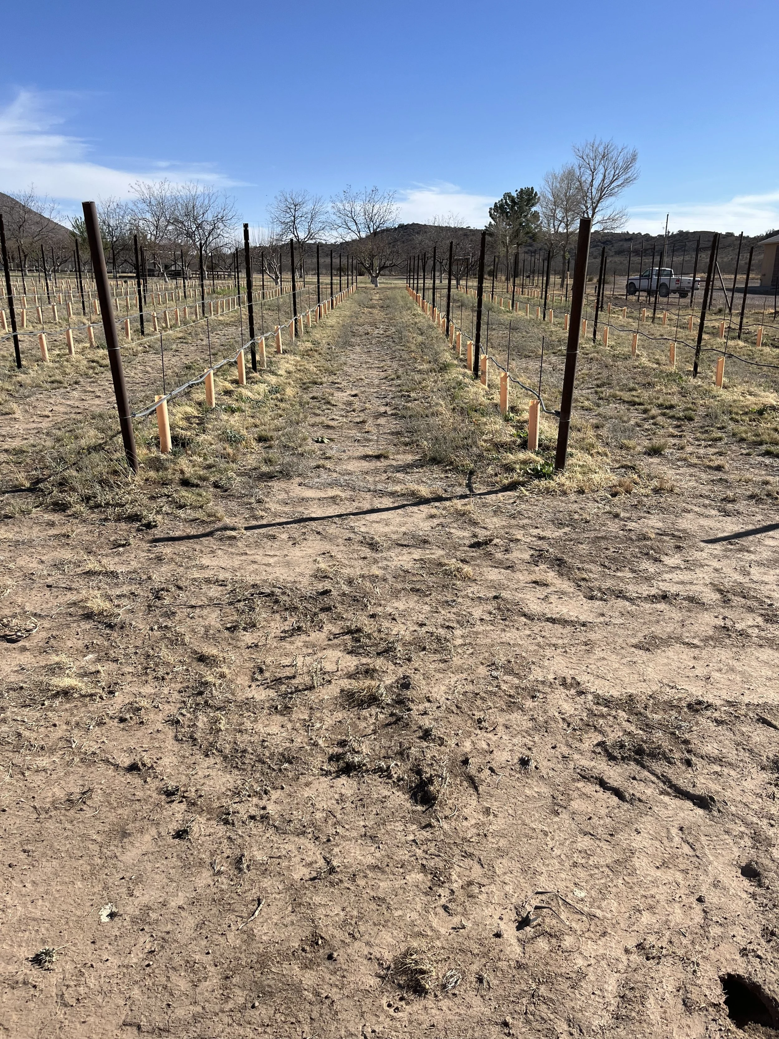 Mountain Shadows Vineyard just before bud break, March 2025. This photo was taken at the tail end of the first winer for these vines.