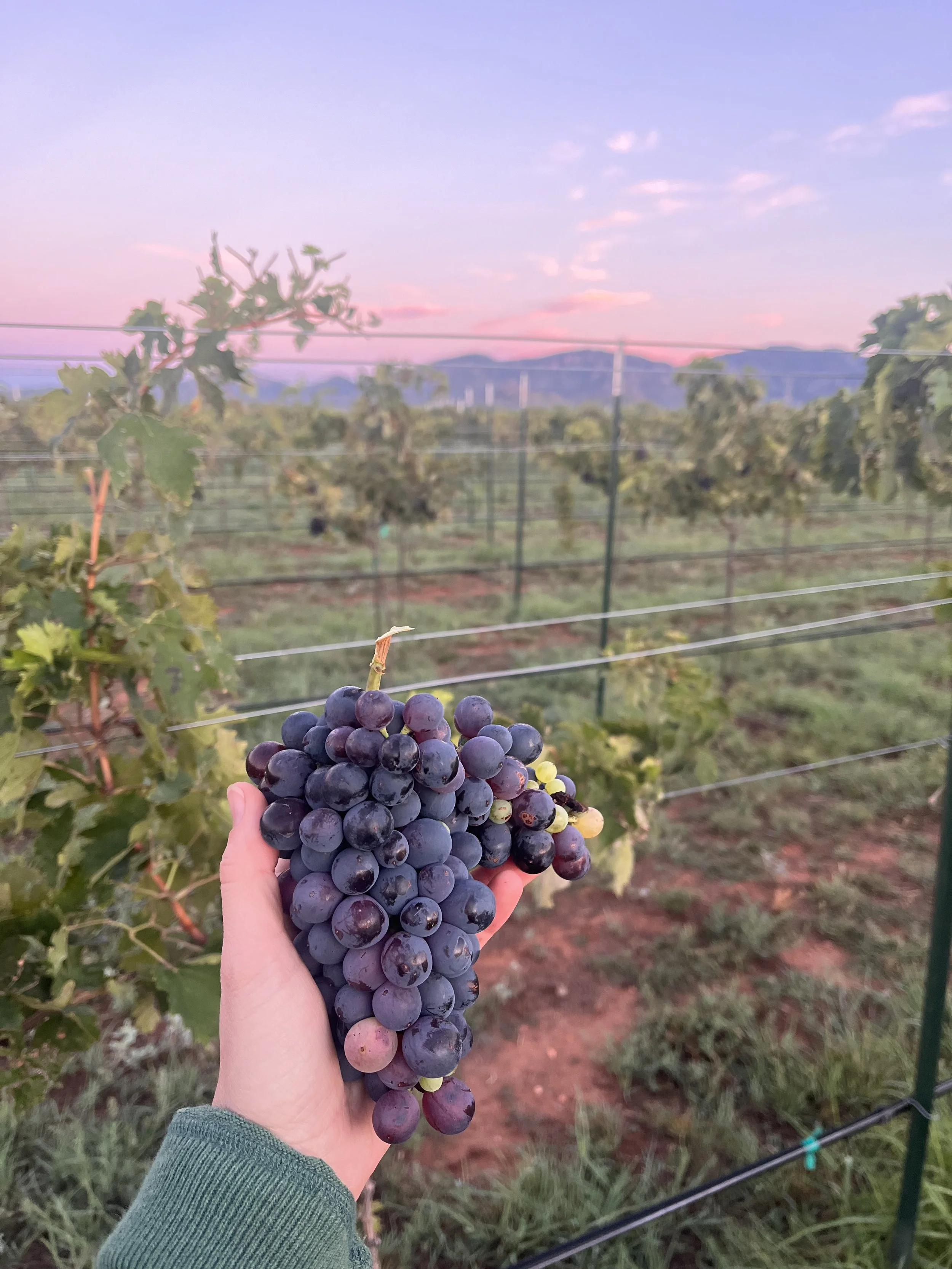 Sunrise Montepulciano harvest - Montepulciano from Living Water Vineyard has become one of our favorite varieties in the Davis Mountains. 2025 was our 4th time harvesting this variety, and this fall we will be releasing the first wine to the general public, Incognito 2023. Our wine club members will be receiving this wine in a few weeks. I think those that get to try this wine later this month will agree with me that the 2023 Incognito might be our first wine that really delivers on what we felt the Davis Mountains promised back in 2016 when we first began this journey. For those of you doing the math, we did make a 2022 Living Water Montepulciano, however there was only 21 cases, and it was only sold here in Marfa.